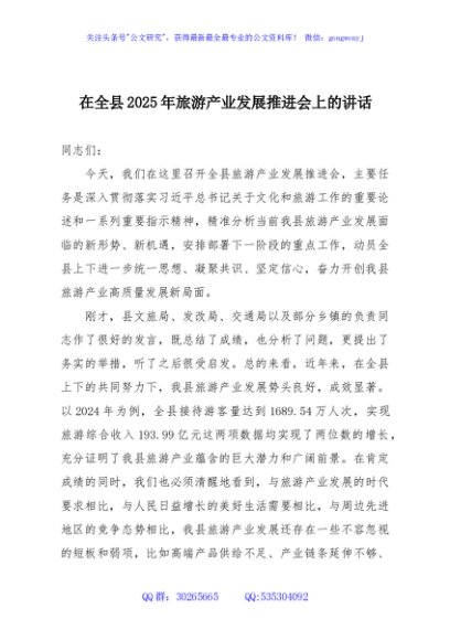 / 在全县2025年旅游产业发展推进会上的讲话