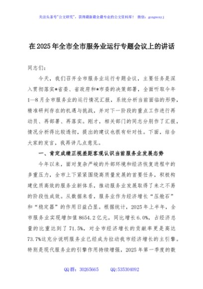 / 在2025年全市全市服务业运行专题会议上的讲话