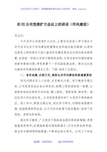 / 在XX公司党委扩大会议上的讲话(作风建设)