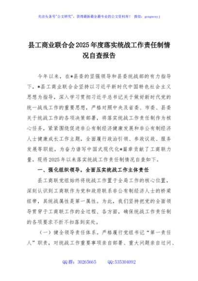 / 县工商业联合会2025年度落实统战工作责任制情况自查报告