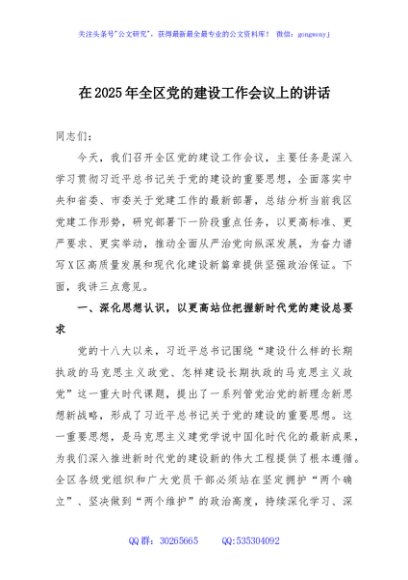 / 在2025年全区党的建设工作会议上的讲话