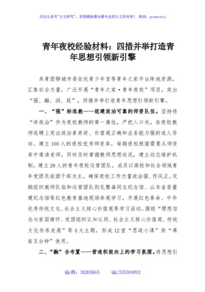 / 青年夜校经验材料:四措并举打造青年思想引领新引擎