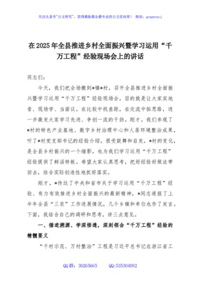/ 在2025年全县推进乡村全面振兴暨学习运用“千万工程”经验现场会上的讲话