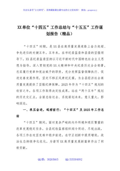 / XX单位“十四五”工作总结与“十五五”工作谋划报告(精品)