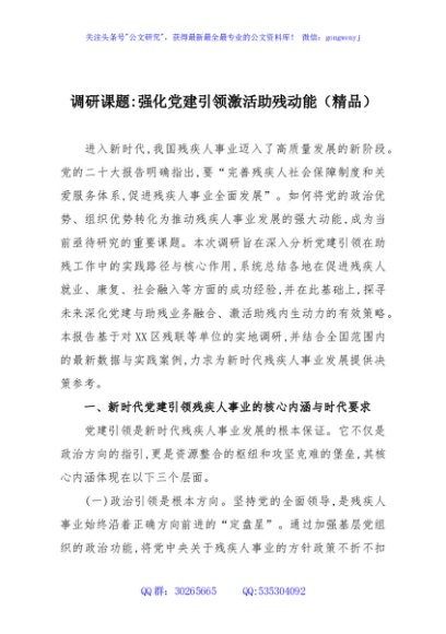 / 调研课题强化党建引领激活助残动能(精品)