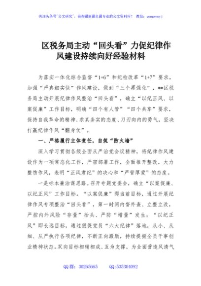 / 区税务局主动“回头看”力促纪律作风建设持续向好经验材料