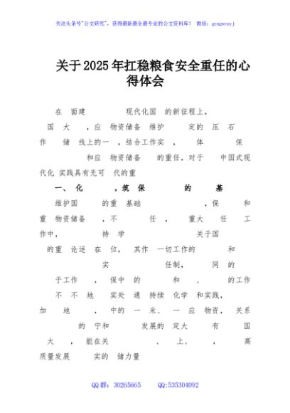 / 关于2025年扛稳粮食安全重任的心得体会