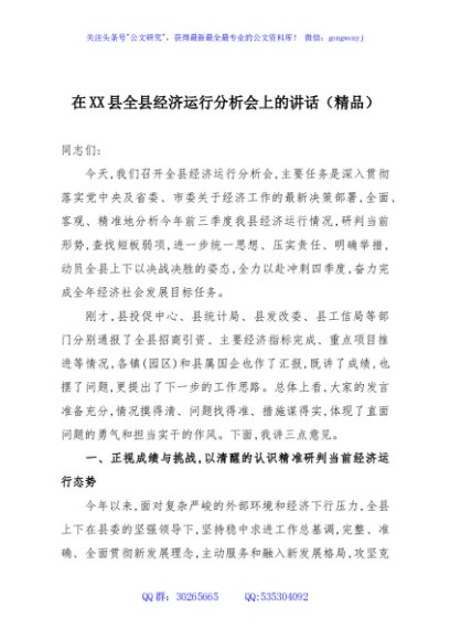 / 在XX县全县经济运行分析会上的讲话(精品)