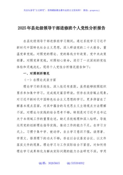 / 2025年县处级领导干部进修班个人党性分析报告