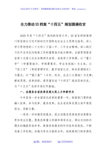 / 全力推动XX档案“十四五”规划圆满收官