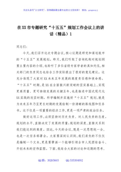 / 在XX市专题研究“十五五”规划工作会议上的讲话(精品)1