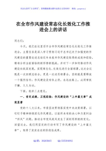 / 在全市作风建设常态化长效化工作推进会上的讲话