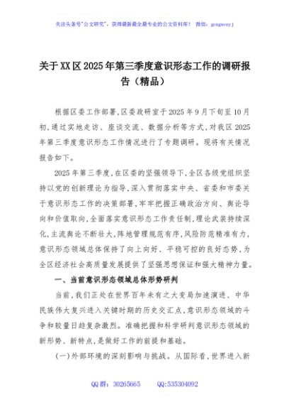 / 关于XX区2025年第三季度意识形态工作的调研报告(精品)