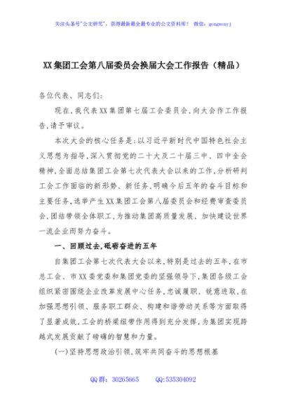 / XX集团工会第八届委员会换届大会工作报告(精品)