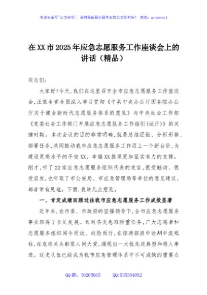 / 在XX市2025年应急志愿服务工作座谈会上的讲话(精品)