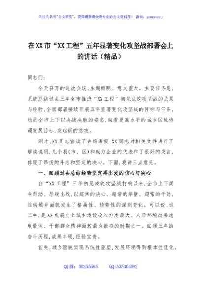 / 在XX市“XX工程”五年显著变化攻坚战部署会上的讲话(精品)