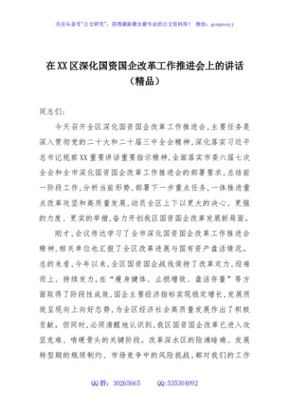 / 在XX区深化国资国企改革工作推进会上的讲话(精品)
