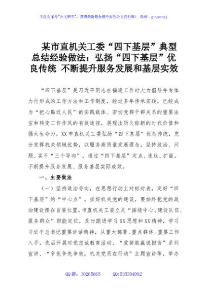 / 某市直机关工委“四下基层”典型总结经验做法:弘扬“四下基层”优良传统 不断提升服务发展和基层实效