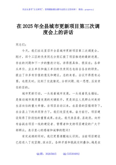 / 在2025年全县城市更新项目第三次调度会上的讲话