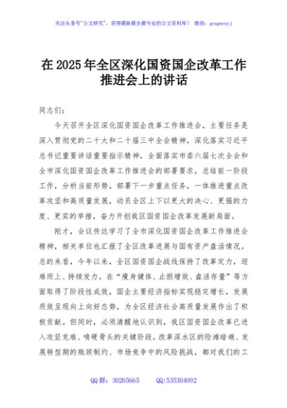 / 在2025年全区深化国资国企改革工作推进会上的讲话