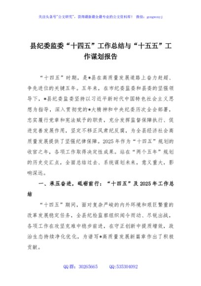 / 县纪委监委“十四五”工作总结与“十五五”工作谋划报告