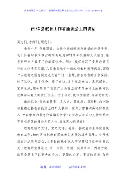 / 在XX县教育工作者座谈会上的讲话