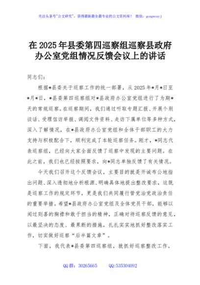 / 在2025年县委第四巡察组巡察县政府办公室党组情况反馈会议上的讲话