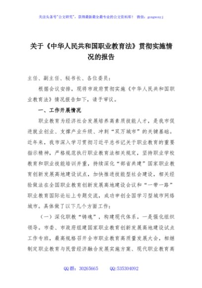 / 关于《中华人民共和国职业教育法》贯彻实施情况的报告