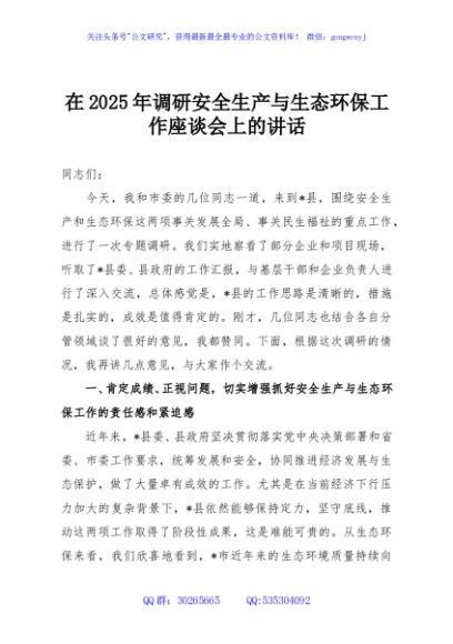 / 在2025年调研安全生产与生态环保工作座谈会上的讲话