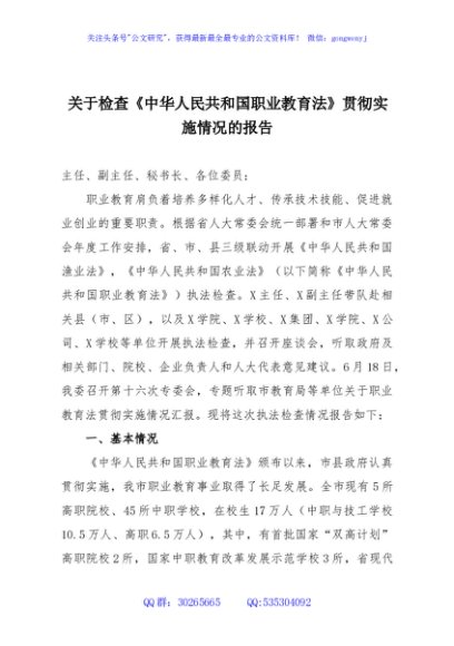 / 关于检查《中华人民共和国职业教育法》贯彻实施情况的报告