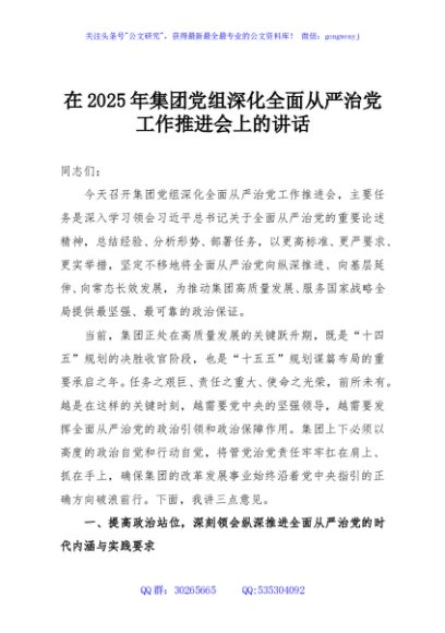 / 在2025年集团党组深化全面从严治党工作推进会上的讲话
