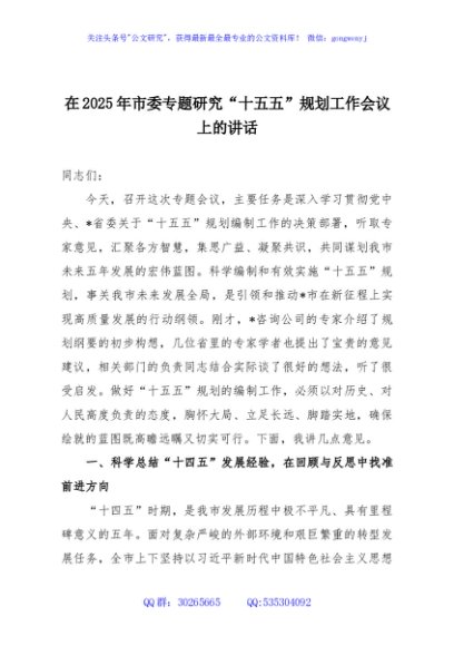 / 在2025年市委专题研究“十五五”规划工作会议上的讲话