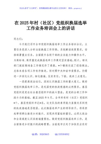 / 在2025年村(社区)党组织换届选举工作业务培训会上的讲话