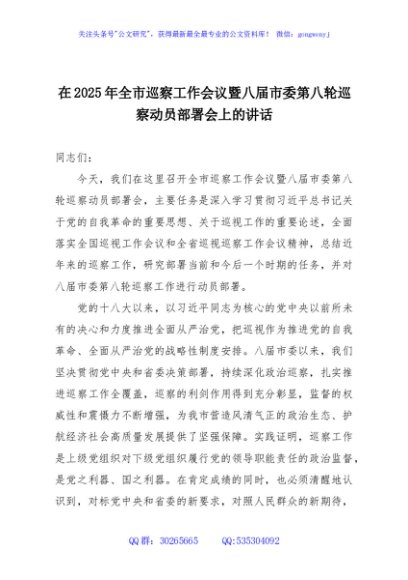 / 在2025年全市巡察工作会议暨八届市委第八轮巡察动员部署会上的讲话