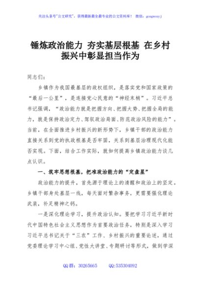 / 锤炼政治能力 夯实基层根基 在乡村振兴中彰显担当作为