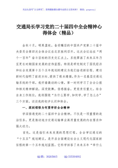/ 交通局长学习党的二十届四中全会精神心得体会(精品)