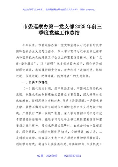 / 市委巡察办第一党支部2025年前三季度党建工作总结