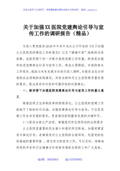 / 关于加强XX医院党建舆论引导与宣传工作的调研报告(精品)