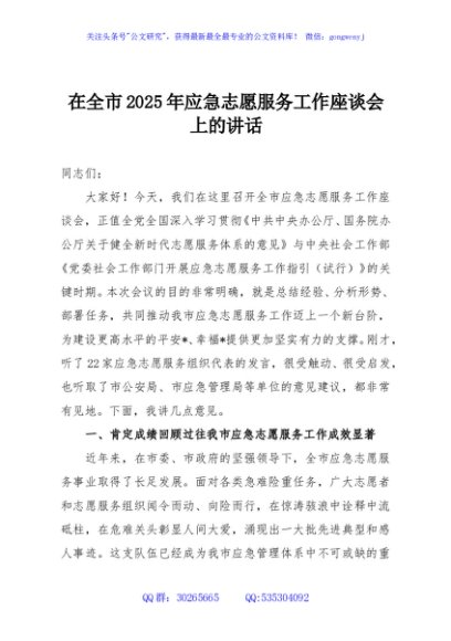 / 在全市2025年应急志愿服务工作座谈会上的讲话