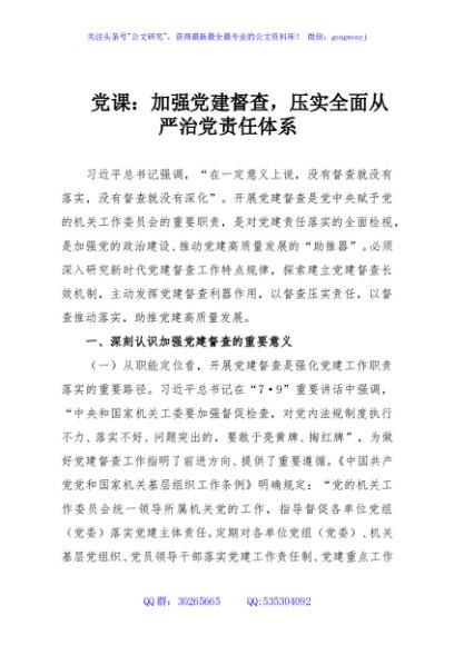 / 党课:加强党建督查,压实全面从严治党责任体系