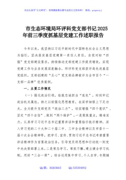 / 市生态环境局环评科党支部书记2025年前三季度抓基层党建工作述职报告
