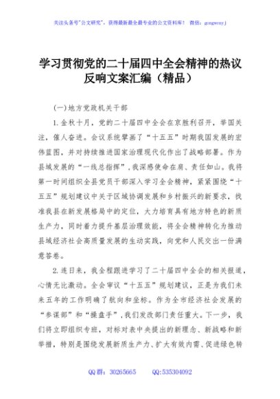 / 学习贯彻党的二十届四中全会精神的热议反响文案汇编(精品)