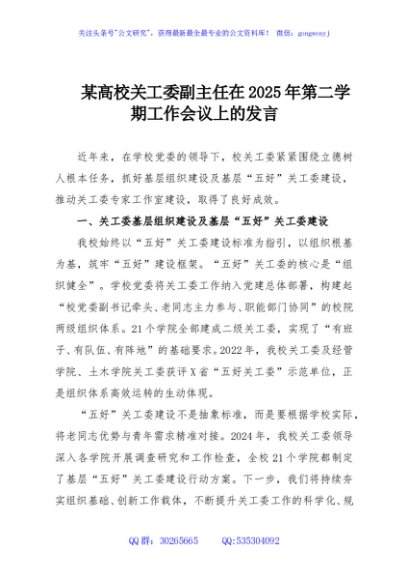 / 某高校关工委副主任在2025年第二学期工作会议上的发言