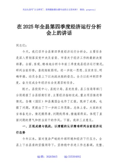 / 在2025年全县第四季度经济运行分析会上的讲话