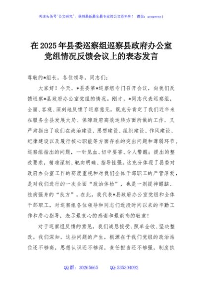/ 在2025年县委巡察组巡察县政府办公室党组情况反馈会议上的表态发言