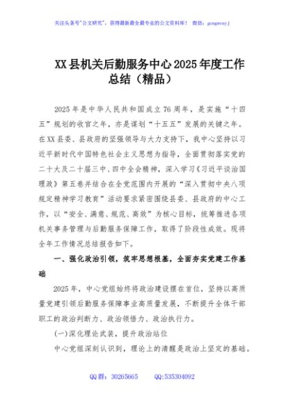 / XX县机关后勤服务中心2025年度工作总结(精品)