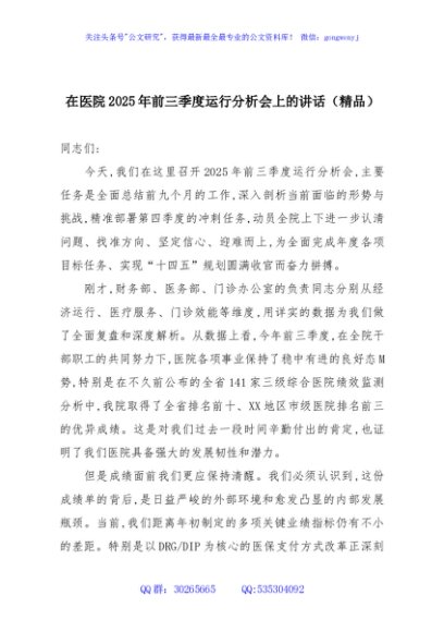 / 在医院2025年前三季度运行分析会上的讲话(精品)