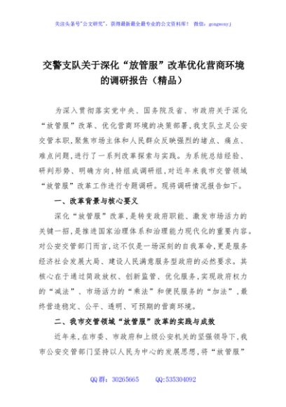 / 交警支队关于深化“放管服”改革优化营商环境的调研报告(精品)