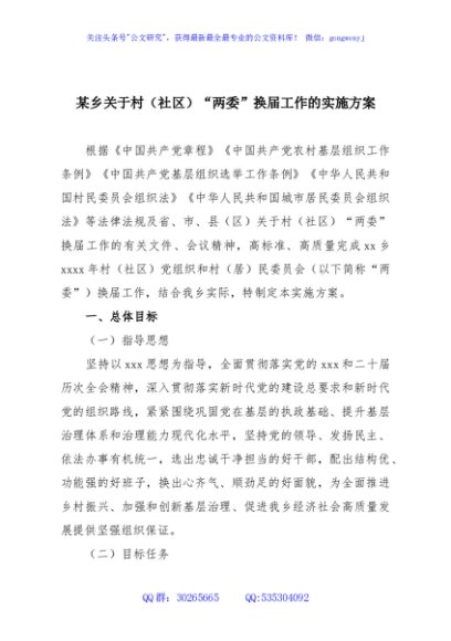 / 某乡关于村(社区)“两委”换届工作的实施方案