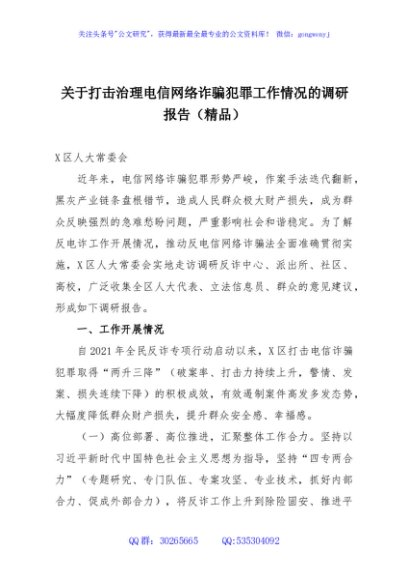 / 关于打击治理电信网络诈骗犯罪工作情况的调研报告(精品)